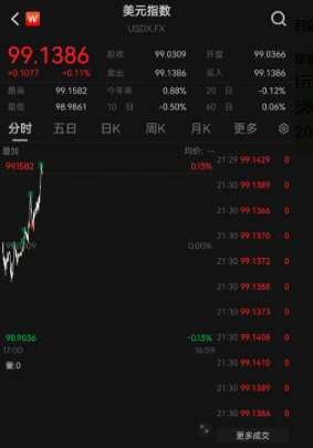 今日(4月9日),截至北京时间9:30,美元指数报99.1386。