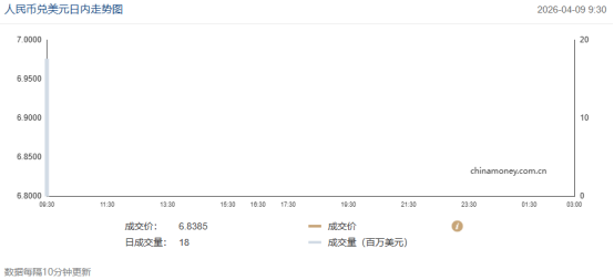 今日(4月9日),人民币兑美元中间价较前升值31个基点,报6.8649。在岸市场人民币兑美元即期汇率开盘价报6.8350,其后人民币呈震荡走势。离岸市场人民币兑美元开盘价报6.8321。